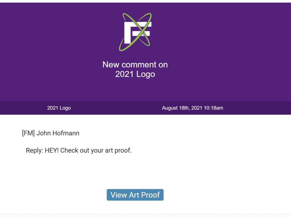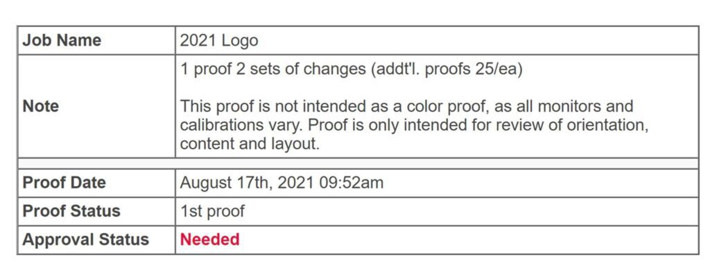 Once we have completed the art for your logo design, we will send you an art proof via email. The email will have a clickable link to take you directly to your art proof!