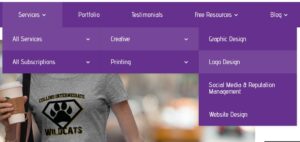 Along the top heading of our website, you’ll find “services.” If you hover over “services” > “all services” > “creative,” you’ll find “logo design.”