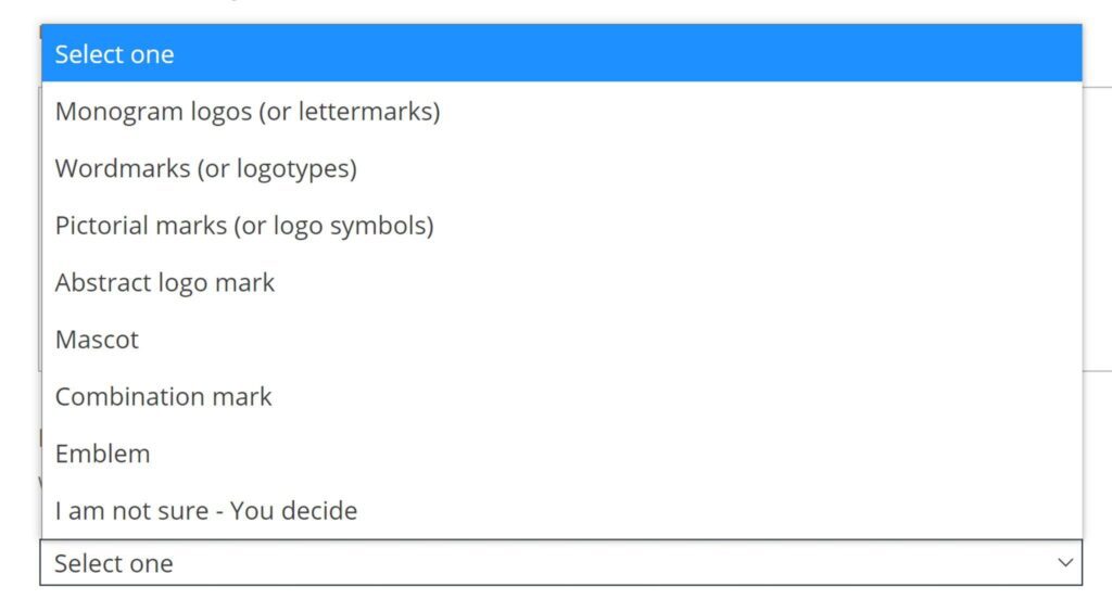 If you’re unsure about what each type of logo looks like, choose the one you are unsure of in the drop-down. Our website will show you multiple variations of great logos for that specific type of logo design.
