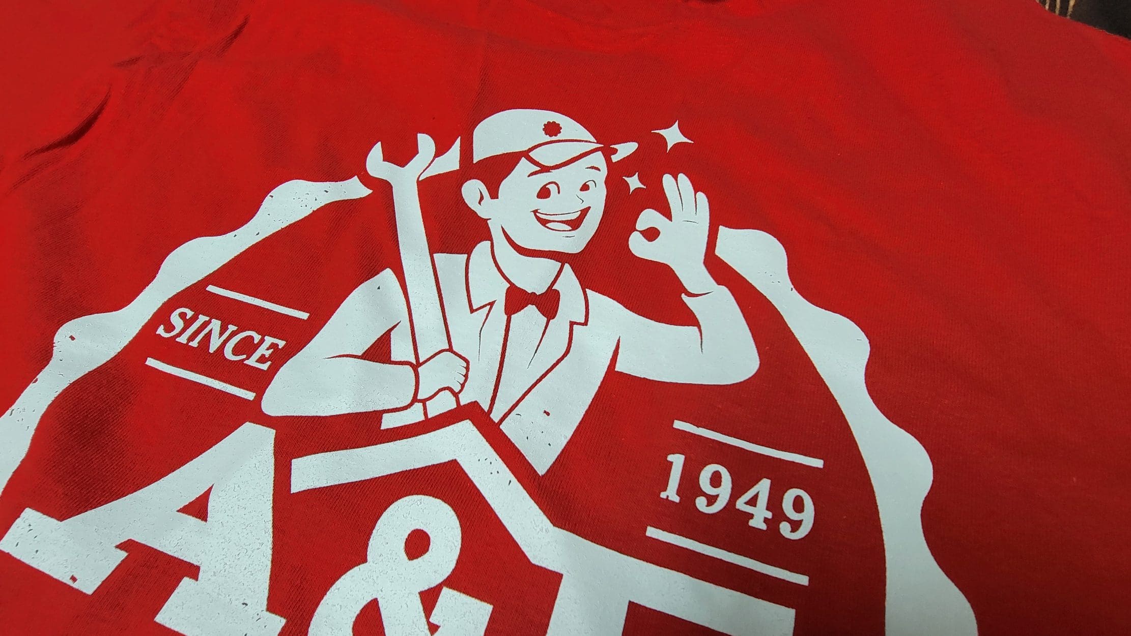 Outcome: The final result was a perfect blend of modernity and nostalgia. The red and black shirts featured a white silkscreen design on the back and left chest that showcased the company’s retro logo. A&E Appliance Repair was beyond satisfied with the outcome, prompting discussions about potentially using the design for rebranding. After careful consideration, we advised against rebranding, as the current branding held strong recognition and lengthy history.