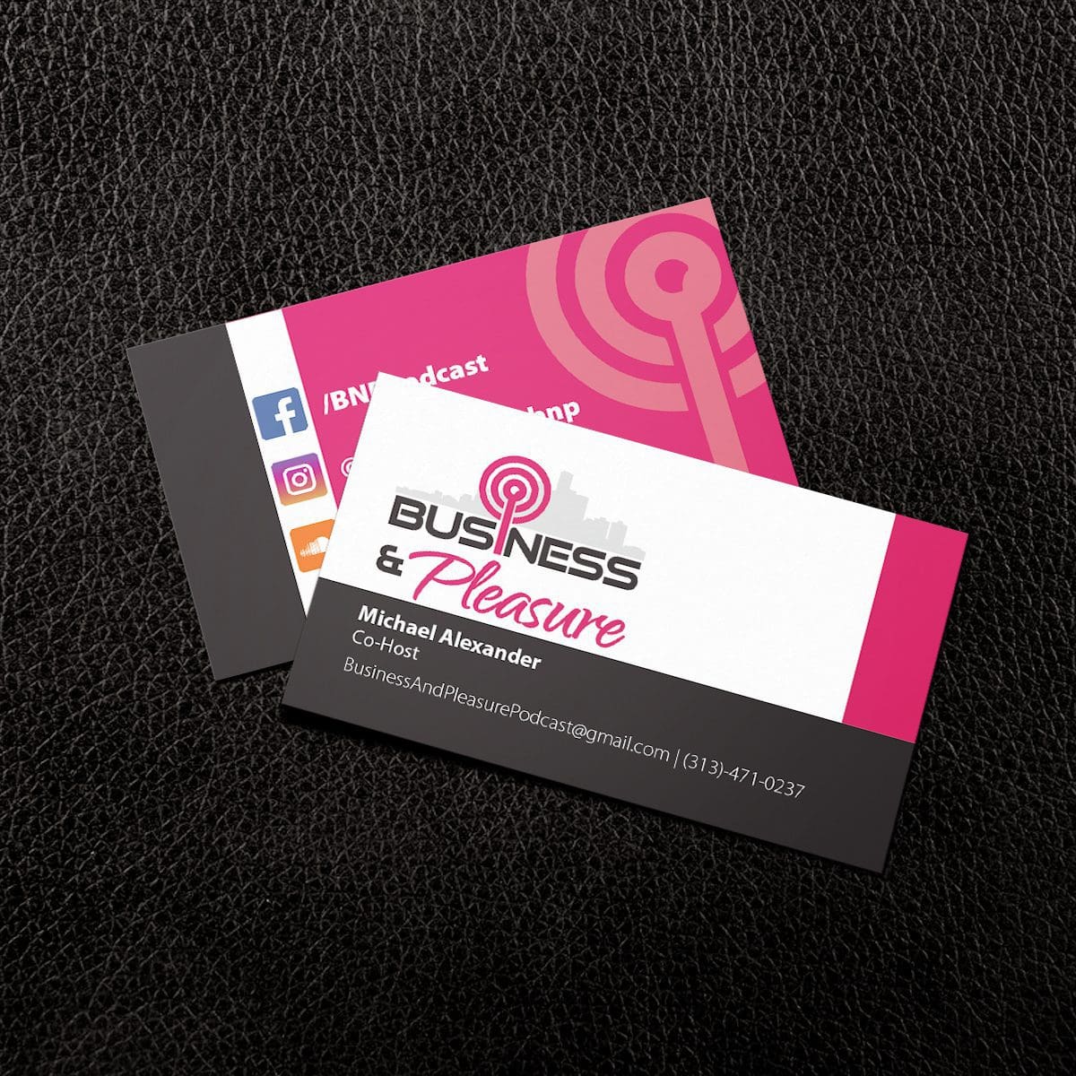 Business and Pleasure Podcast came to Fusion looking for a modern and clean take on a business card. We pulled inspiration from their logo and created a strong layout for the brand focusing their logo and social media.