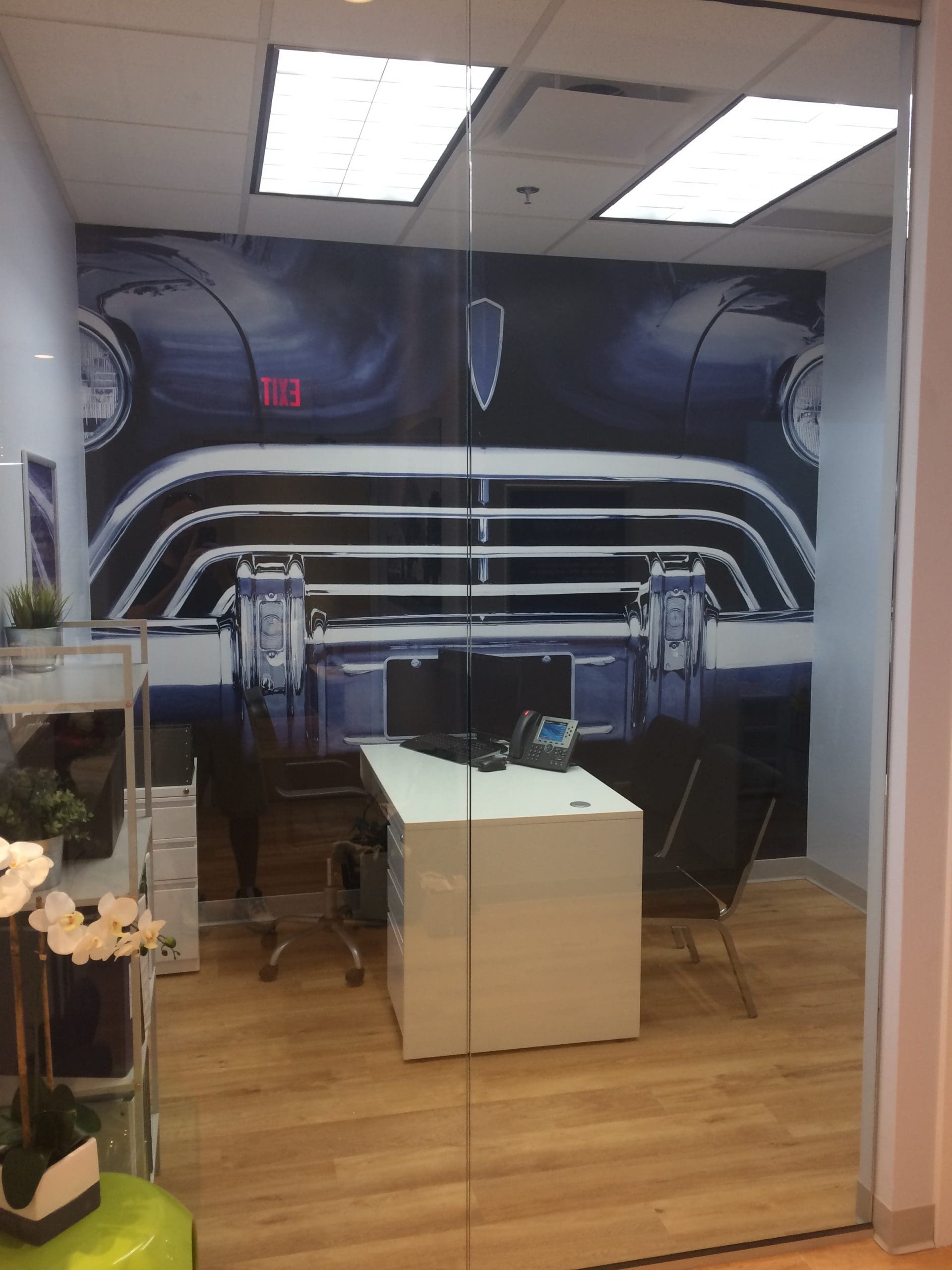 Dental Works opened new locations and wanted to visually rebrand their waiting rooms. They chose to go with Iconic MI / Detroit imagery with a Blue filter. Being on Woodward they chose to go with an iconic front end of a vehicle.  The blue toned filter over the image greatly reduces stress and anxiety.  Blue is known for having tranquil relaxing effects. Next time you visit a Dental Works office get ready to kick your feet up and relax stress-free while waiting for the dentist.