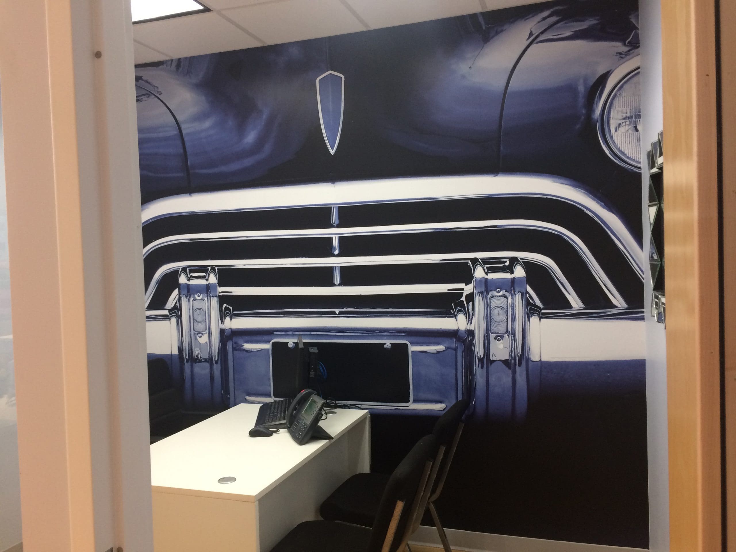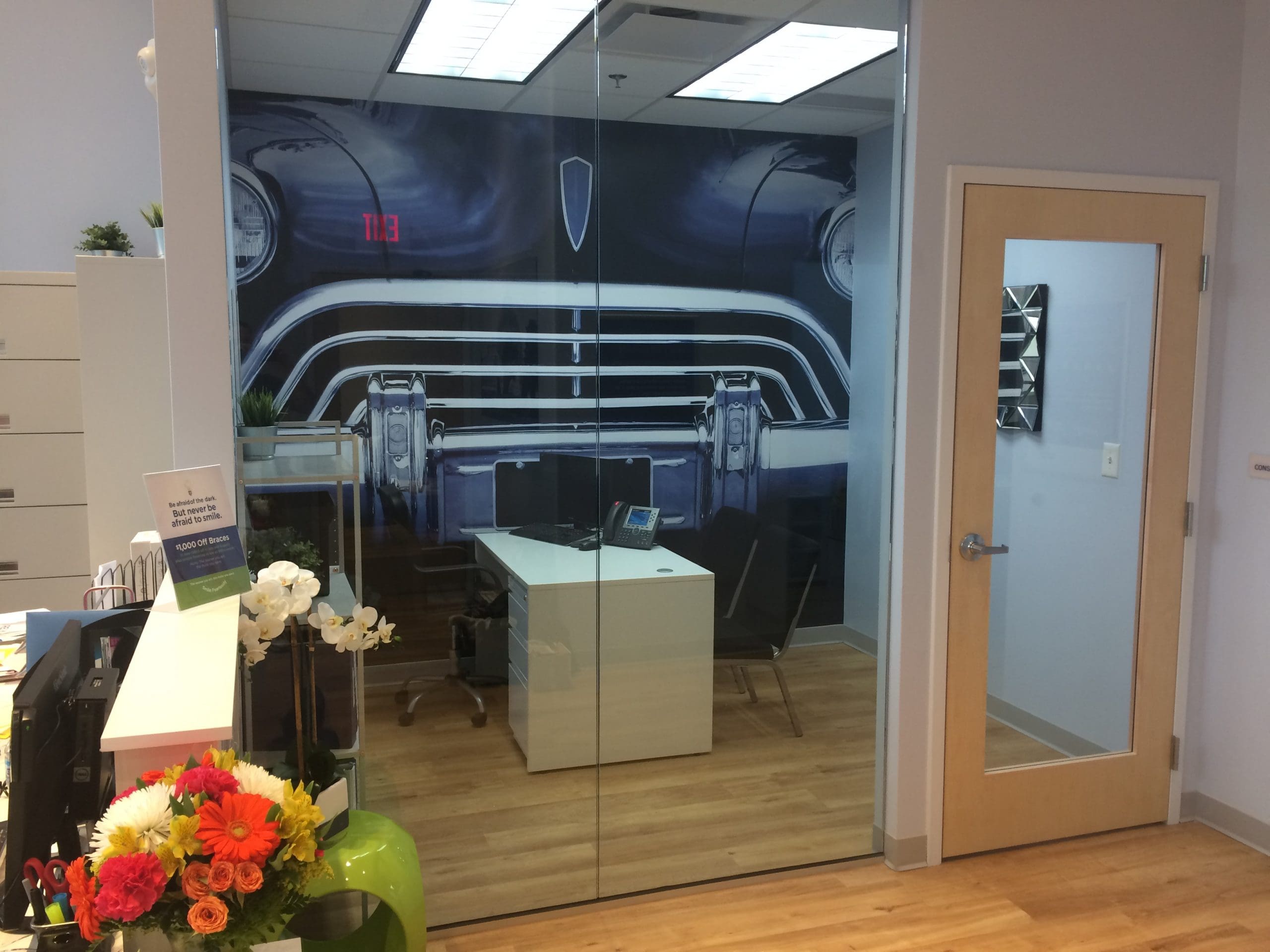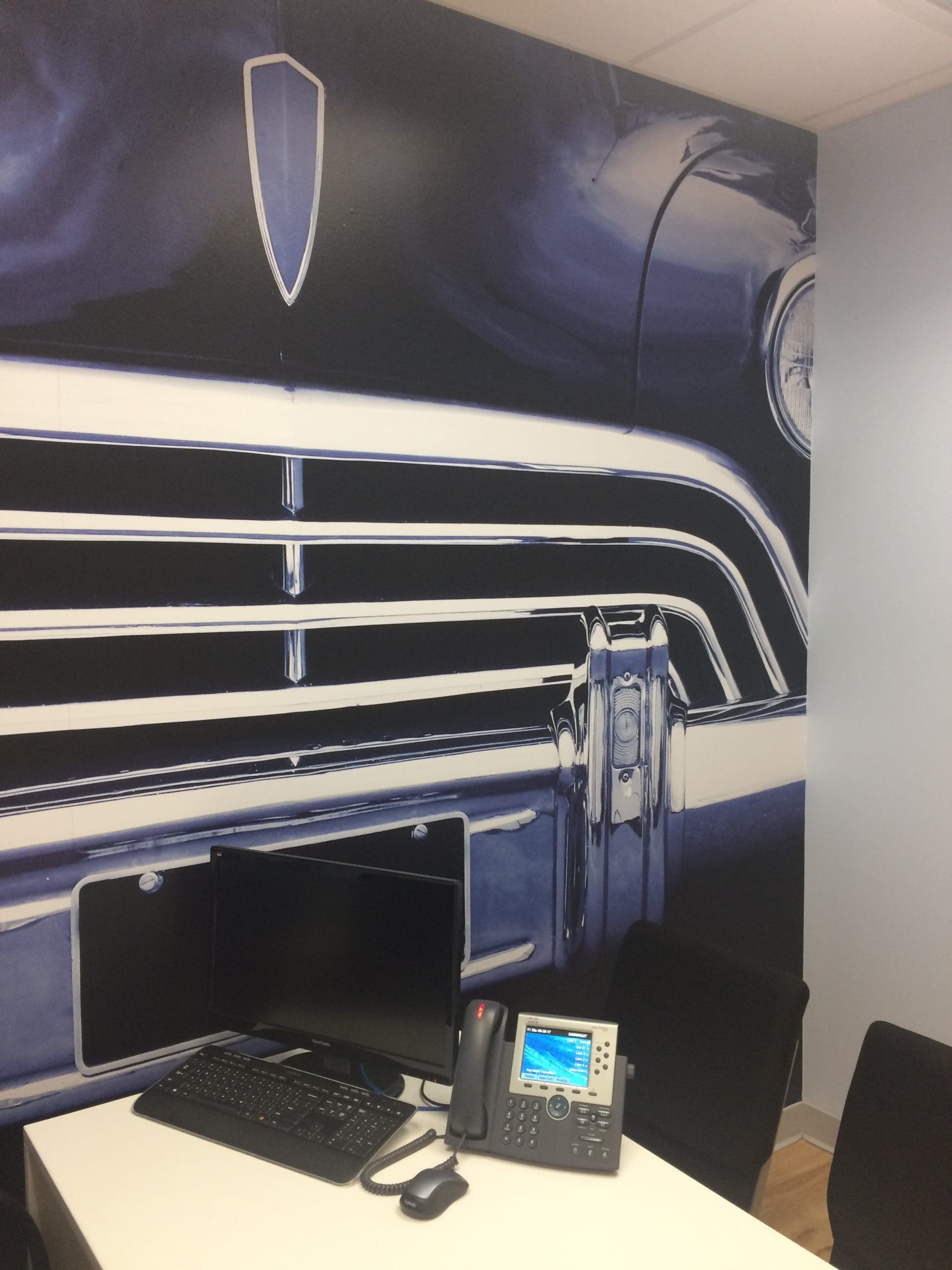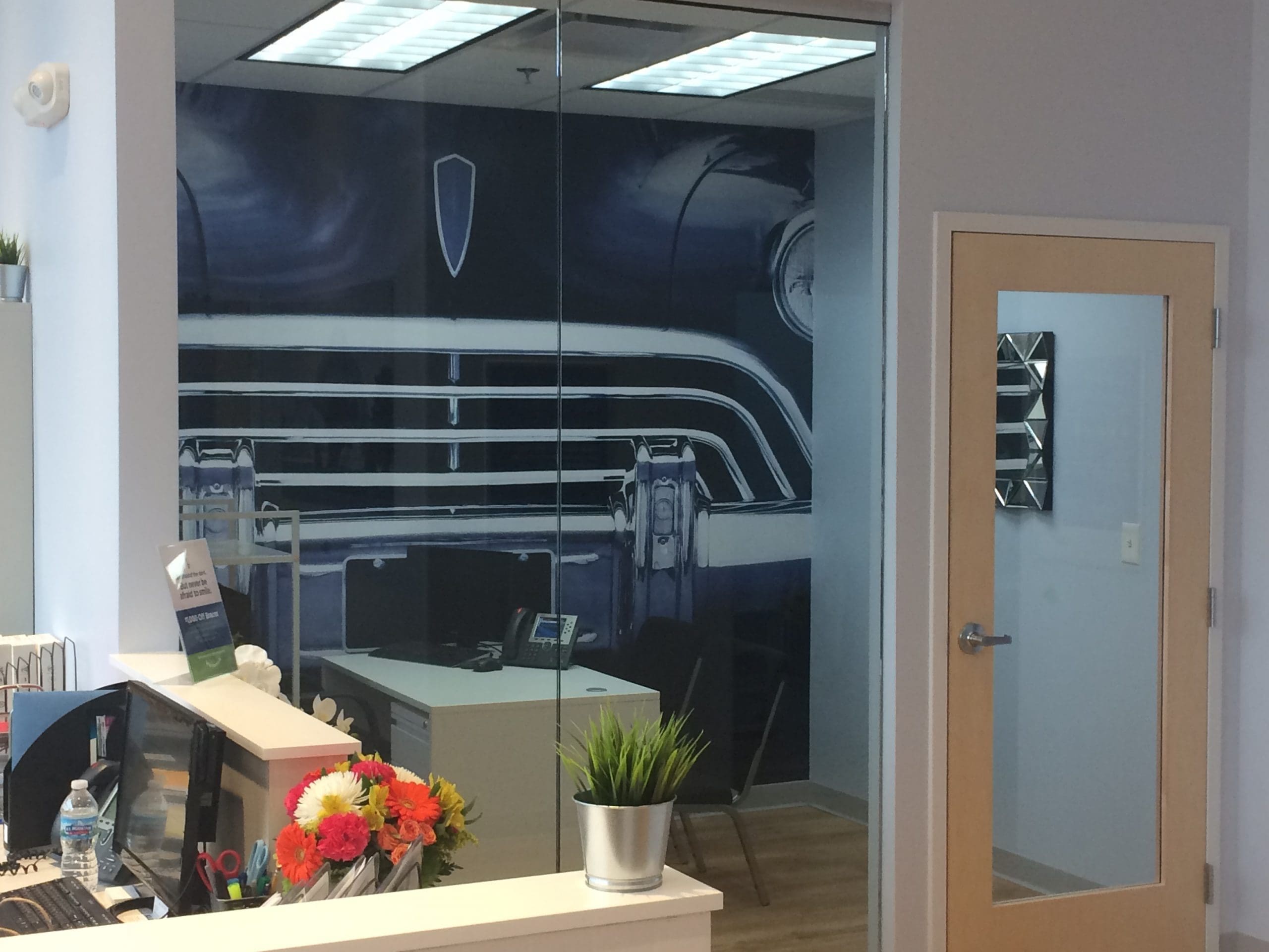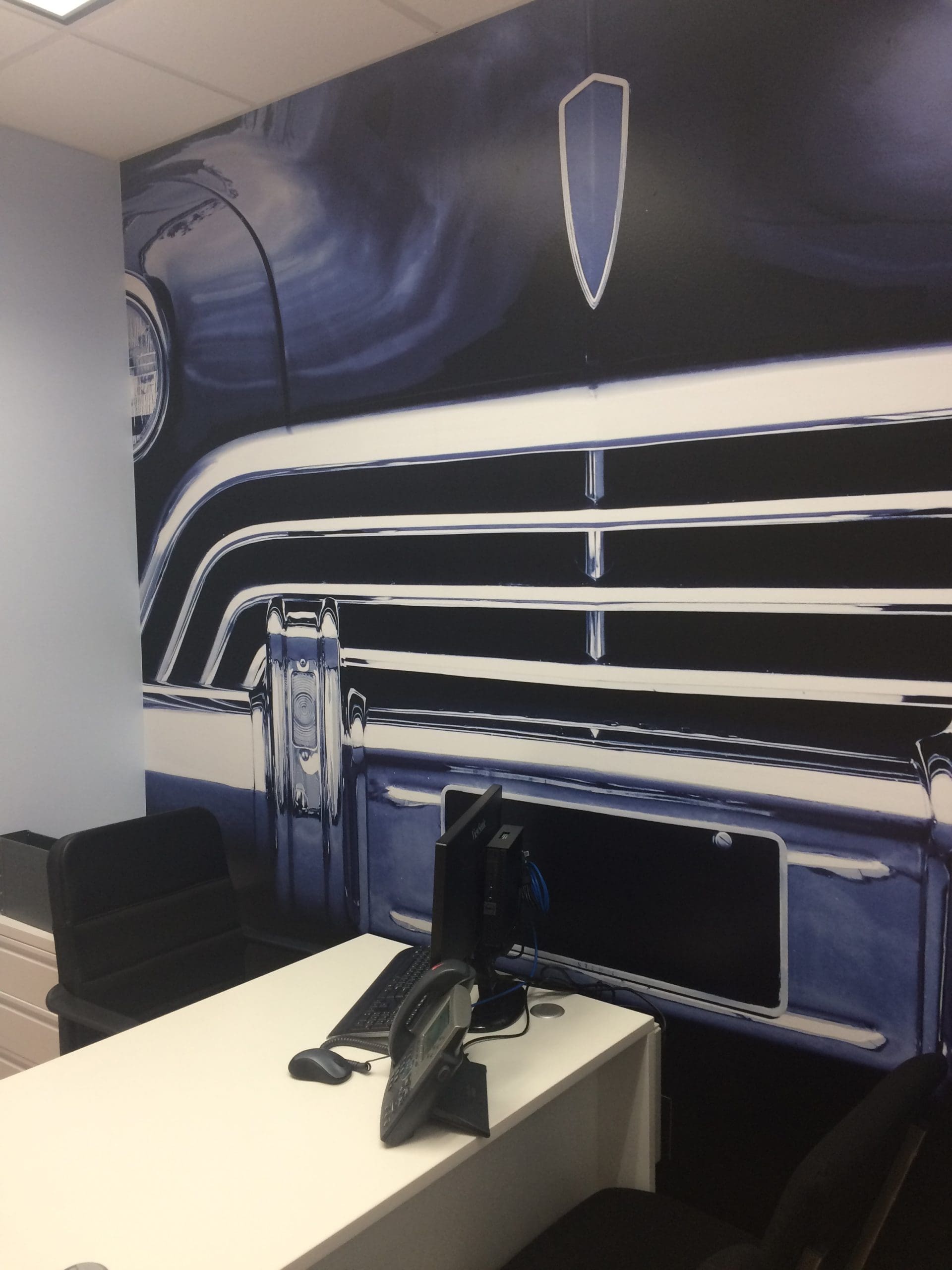 Dental Works opened new locations and wanted to visually rebrand their waiting rooms. They chose to go with Iconic MI / Detroit imagery with a Blue filter. Being on Woodward they chose to go with an iconic front end of a vehicle.  The blue toned filter over the image greatly reduces stress and anxiety.  Blue is known for having tranquil relaxing effects. Next time you visit a Dental Works office get ready to kick your feet up and relax stress-free while waiting for the dentist.