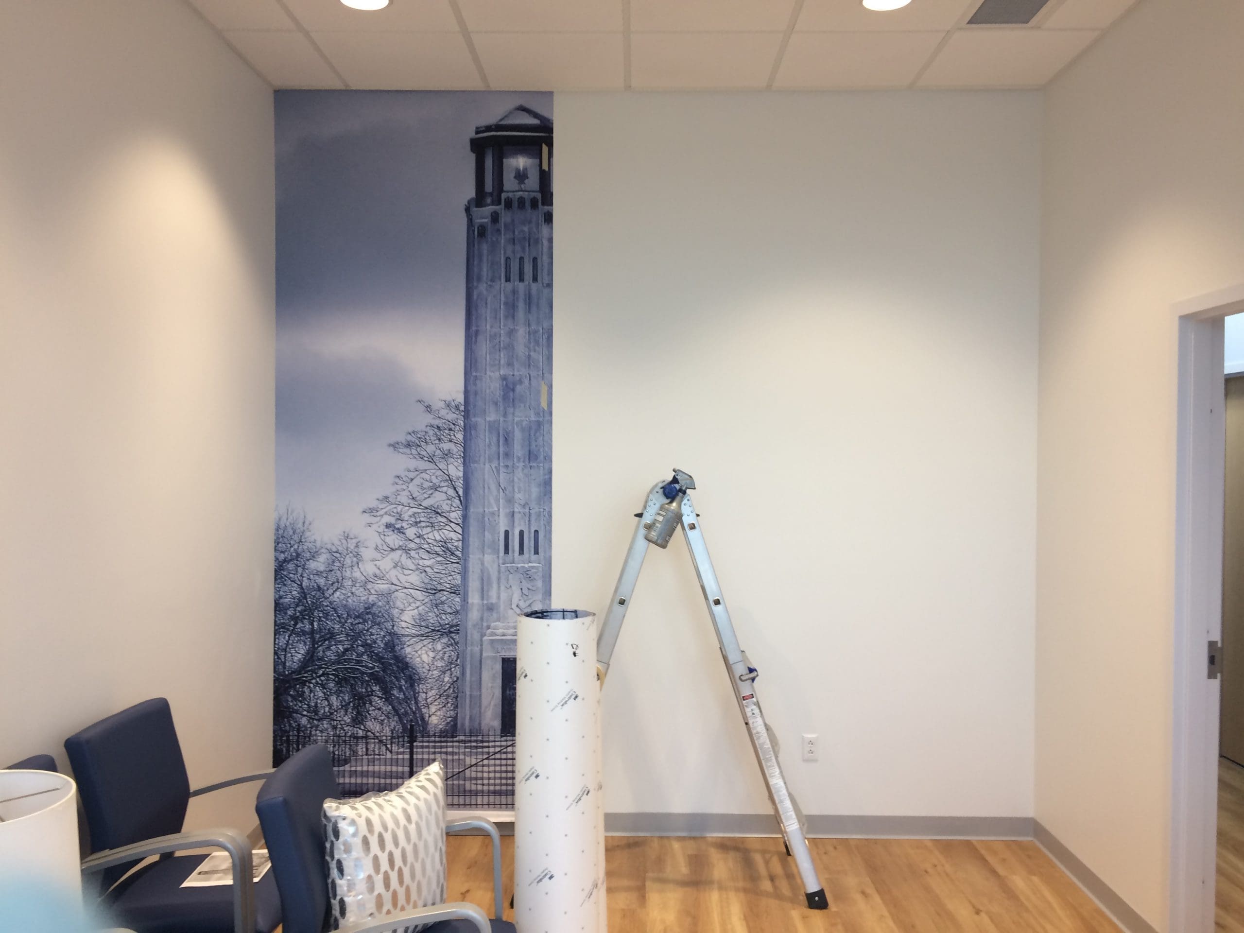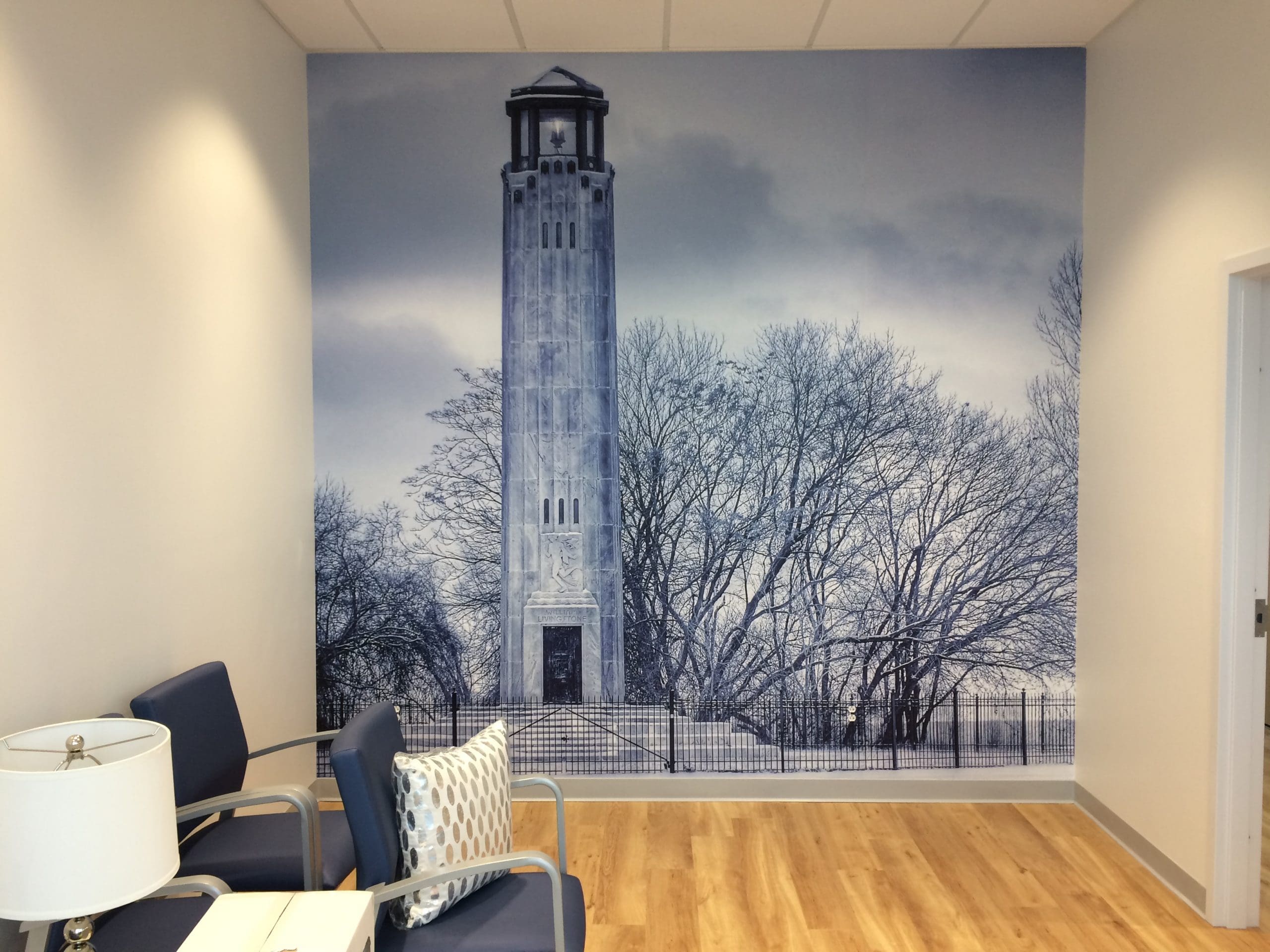 Dental Works opened new locations and wanted to visually rebrand their waiting rooms. They chose to go with Iconic MI / Detroit imagery with a Blue filter over the image. The blue toned filter greatly reduces stress and anxiety. Blue is known for having tranquil relaxing effects. Next time you visit a Dental Works office get ready to kick your feet up and relax stress-free while waiting for the dentist.