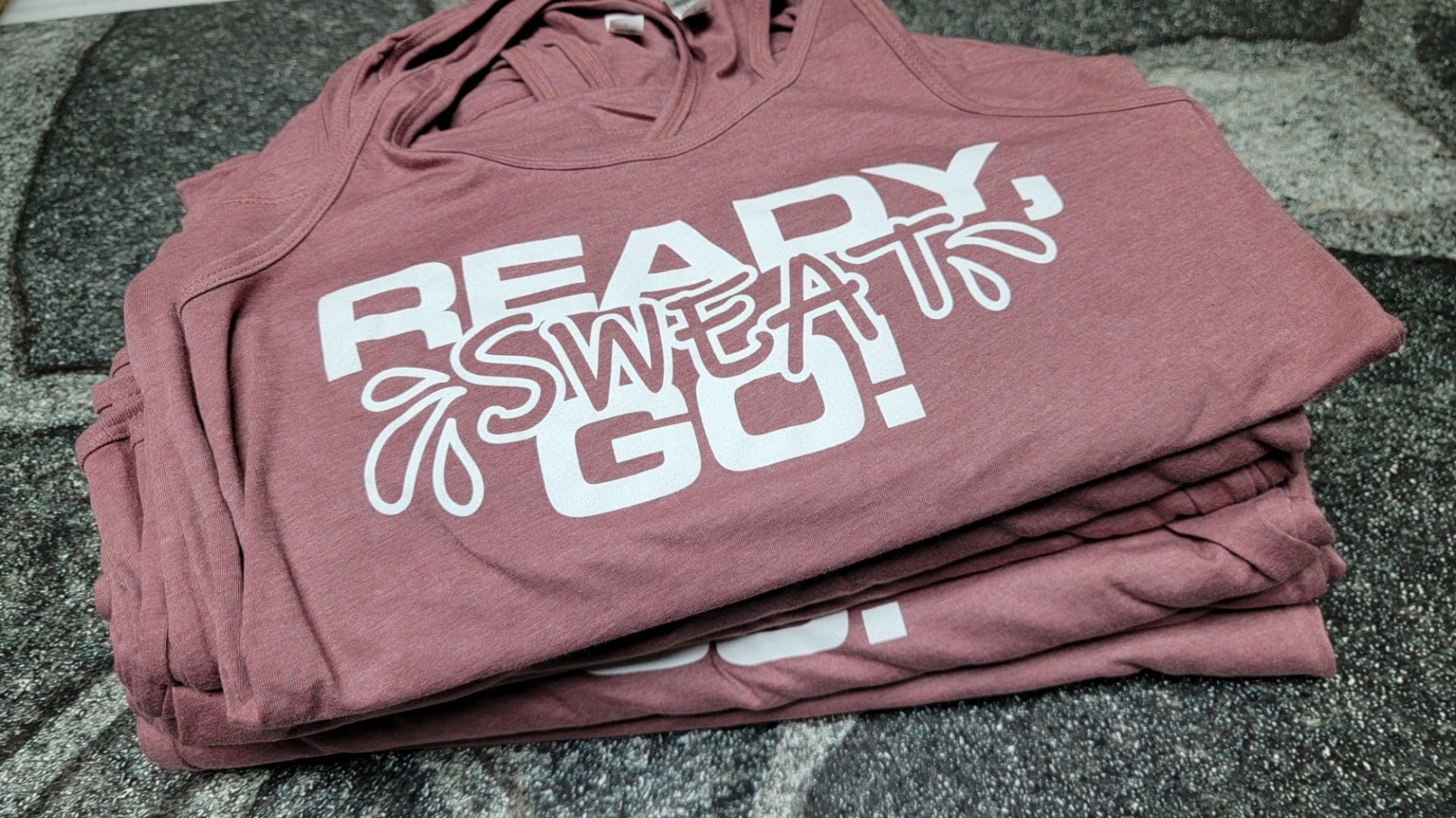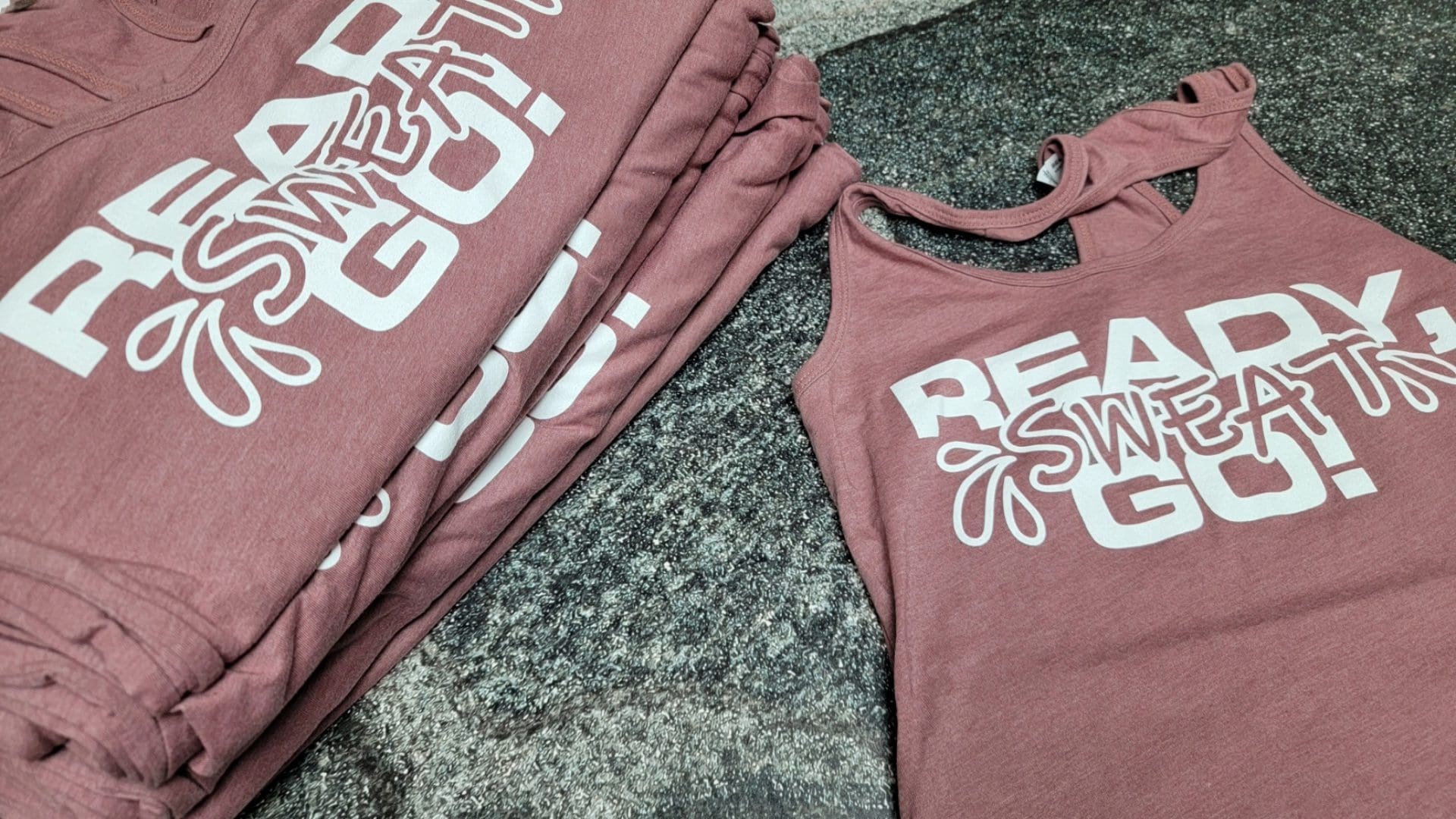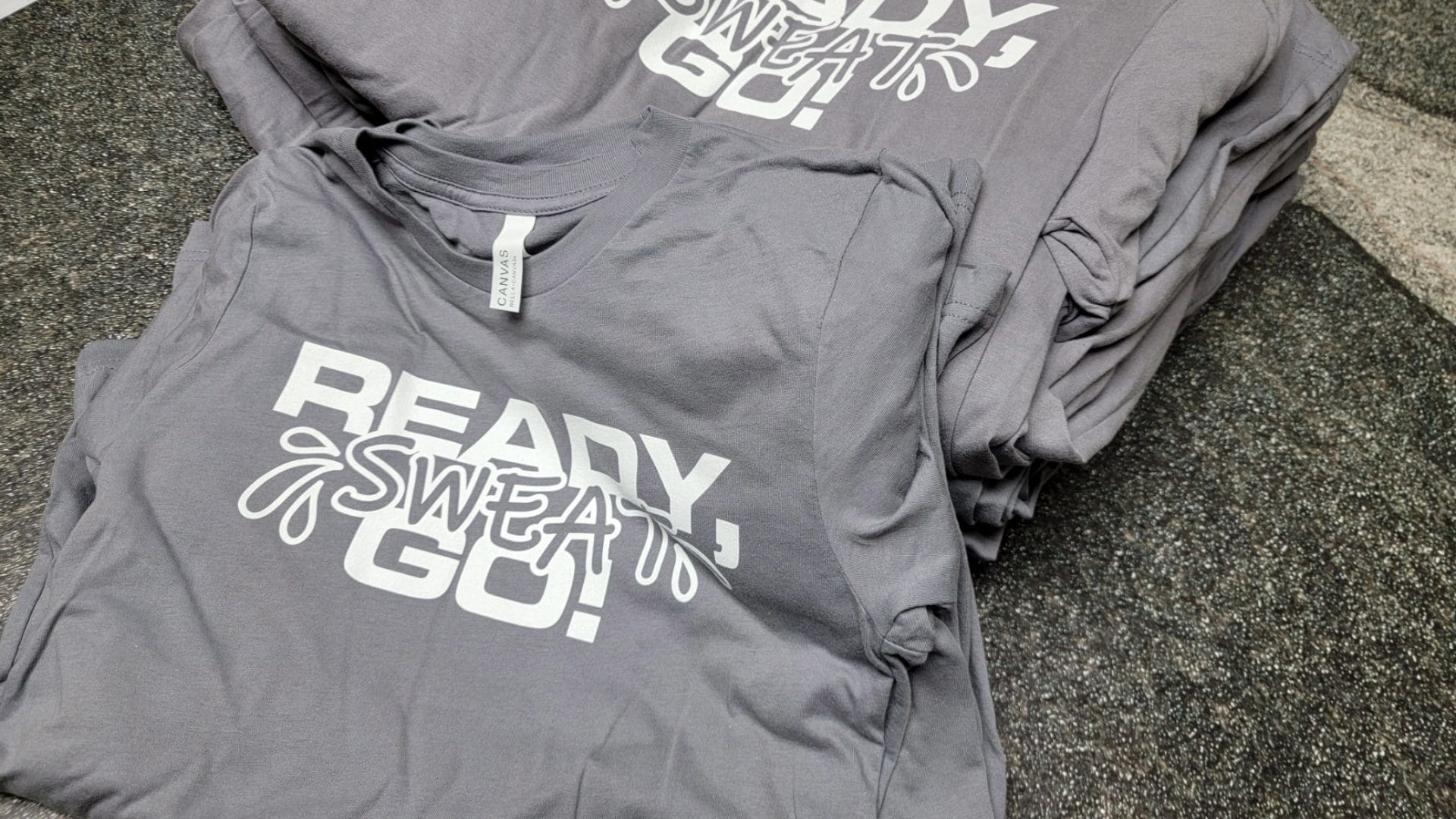 We chose Bella + Canvas shirts for this project due to their high-quality feel, which we knew would be appreciated by Fraser Jazzercise’s clientele. Our team then crafted a playful design incorporating one of the studio’s popular sayings – “Ready Sweat Go!” The design was printed in a crisp, 1-color white on the front of the shirt, creating a striking contrast.