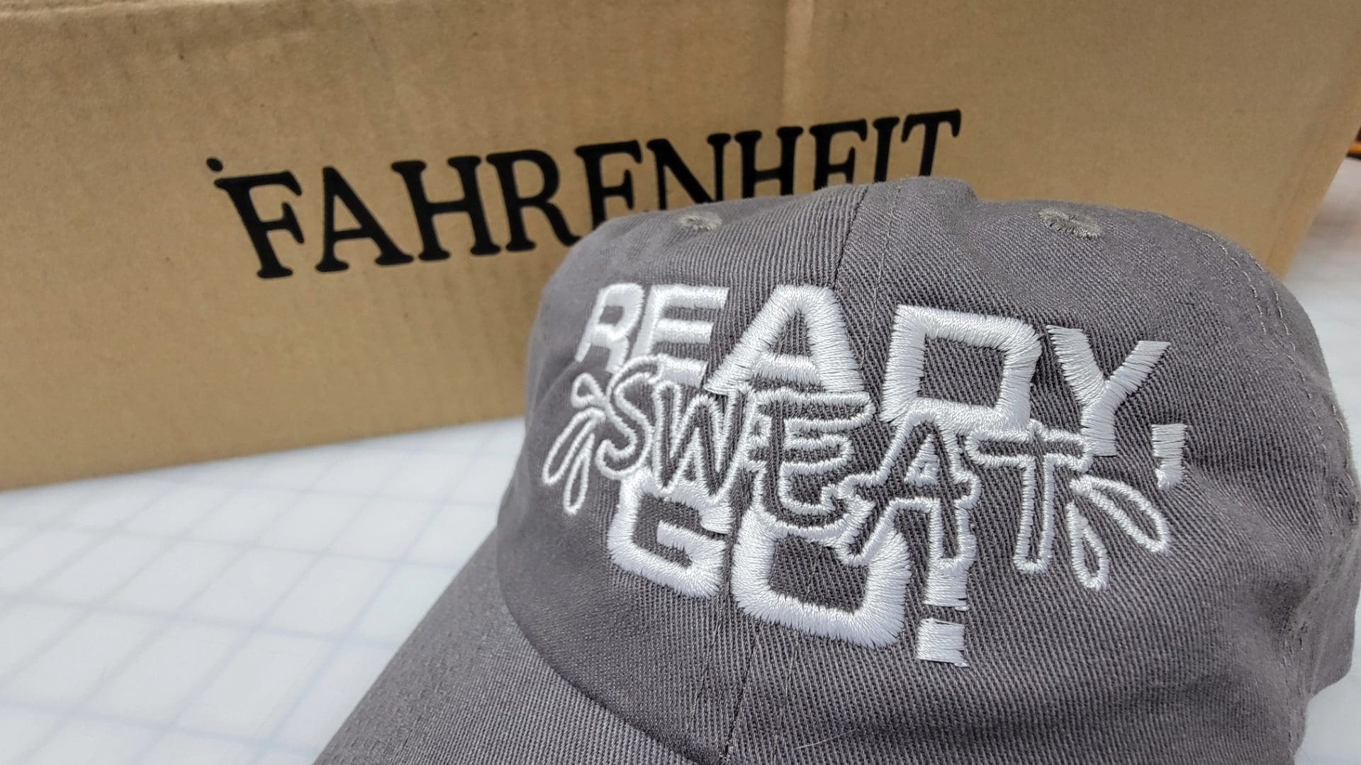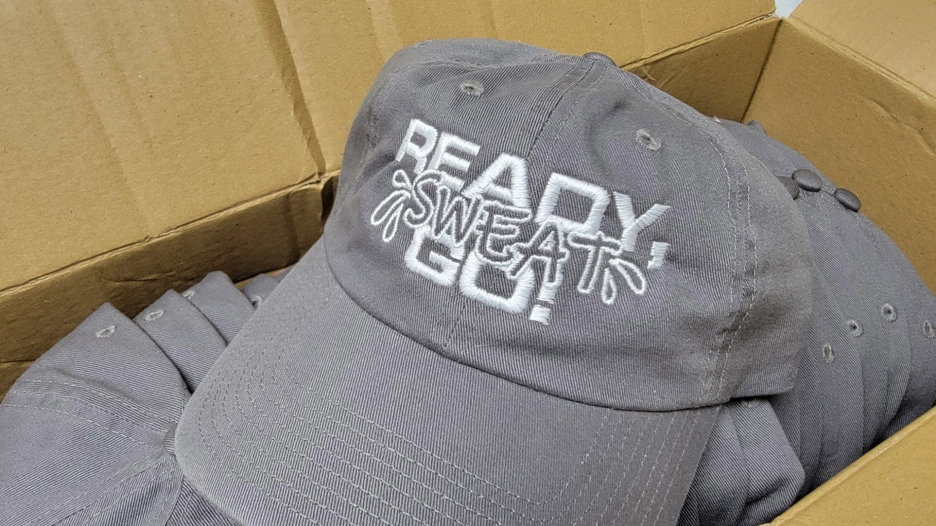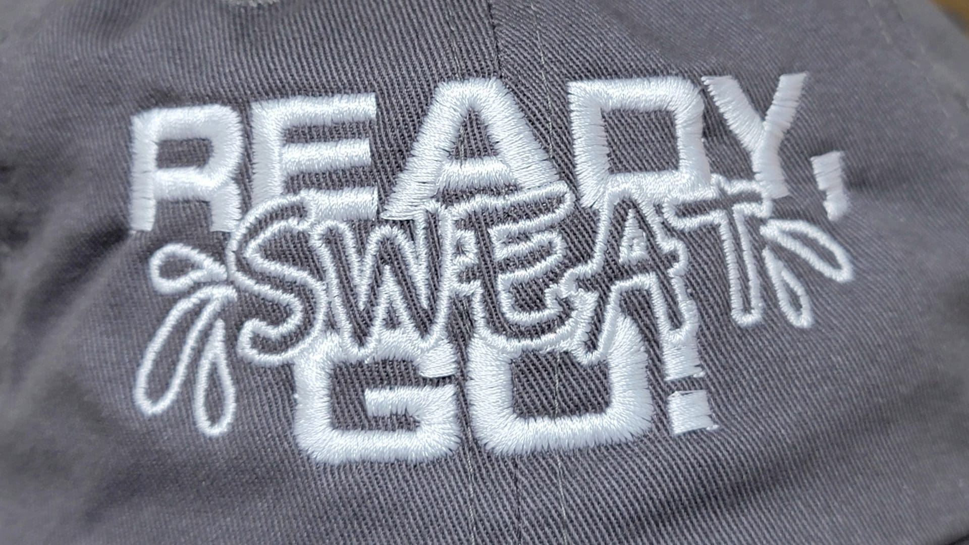 Our Fusion team created a fun and eye-catching design for the hats that reads, “Ready Sweat Go!” in white embroidery, ensuring the message is clear and visible.