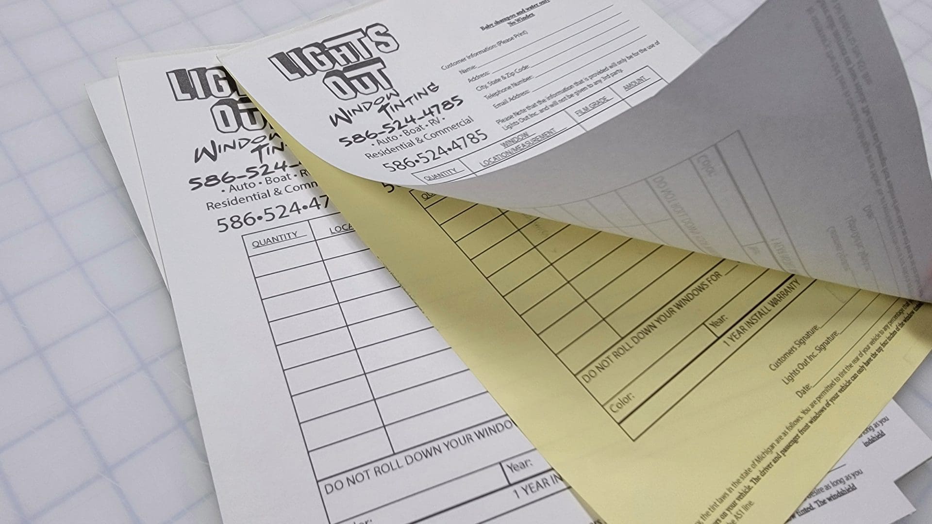 The project’s outcome was a set of custom client estimate forms that met Lights Out’s operational needs and served as a tool to promote its brand. With their company letterhead printed on each form, Lights Out can now easily track records while enhancing their professional image.