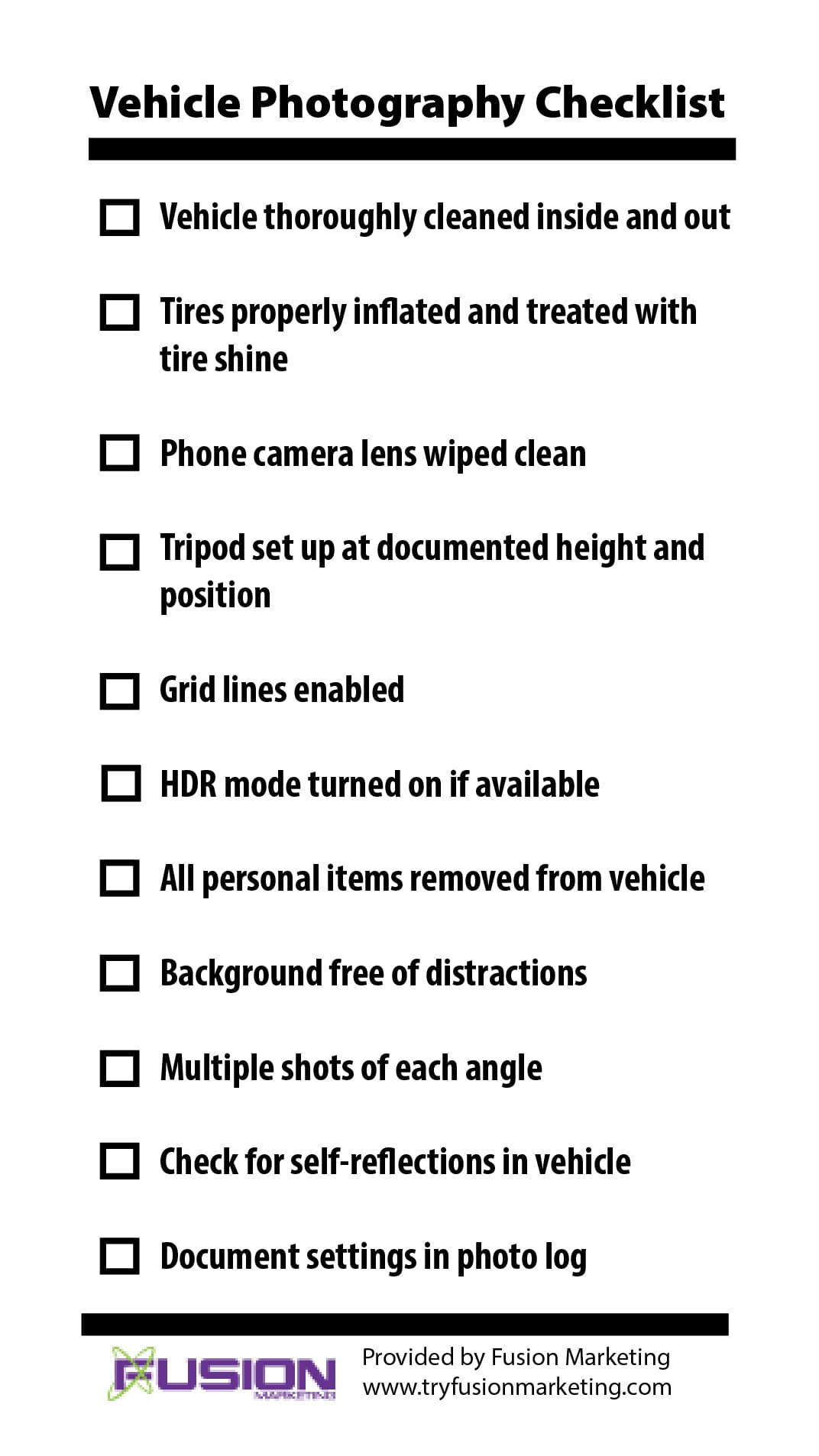 For businesses regularly updating vehicle photos, a simple documentation system can solve most consistency problems: